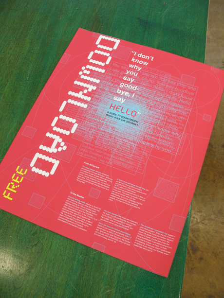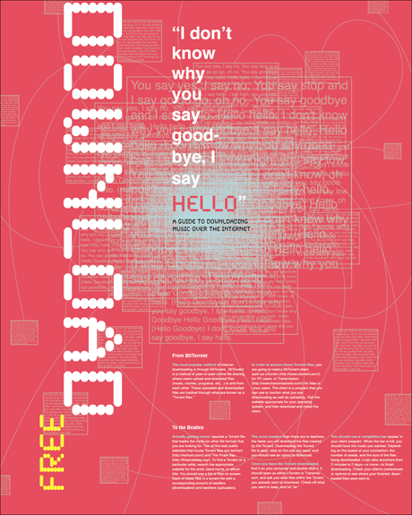 Free Downloads 2009 / poster Typographic poster that explains how to download files through BitTorrent.