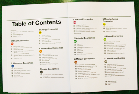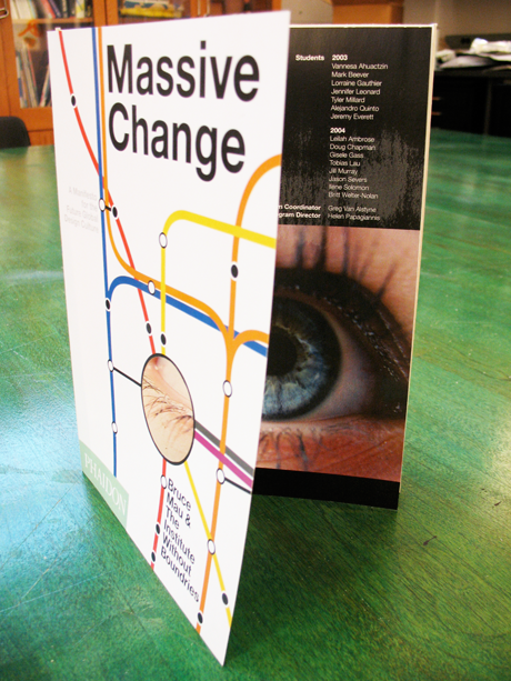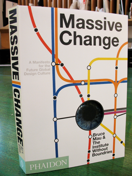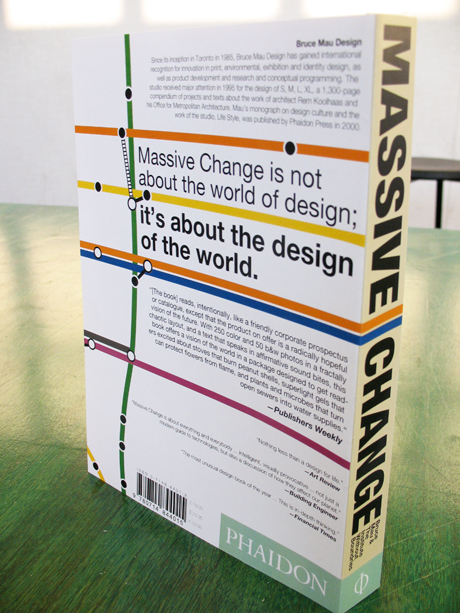 Massive Change 2009 / book cover & table of contents A book cover, with corresponding table of contents, for Bruce Mau's "Massive Change." Subway lines + diecut = awesome.